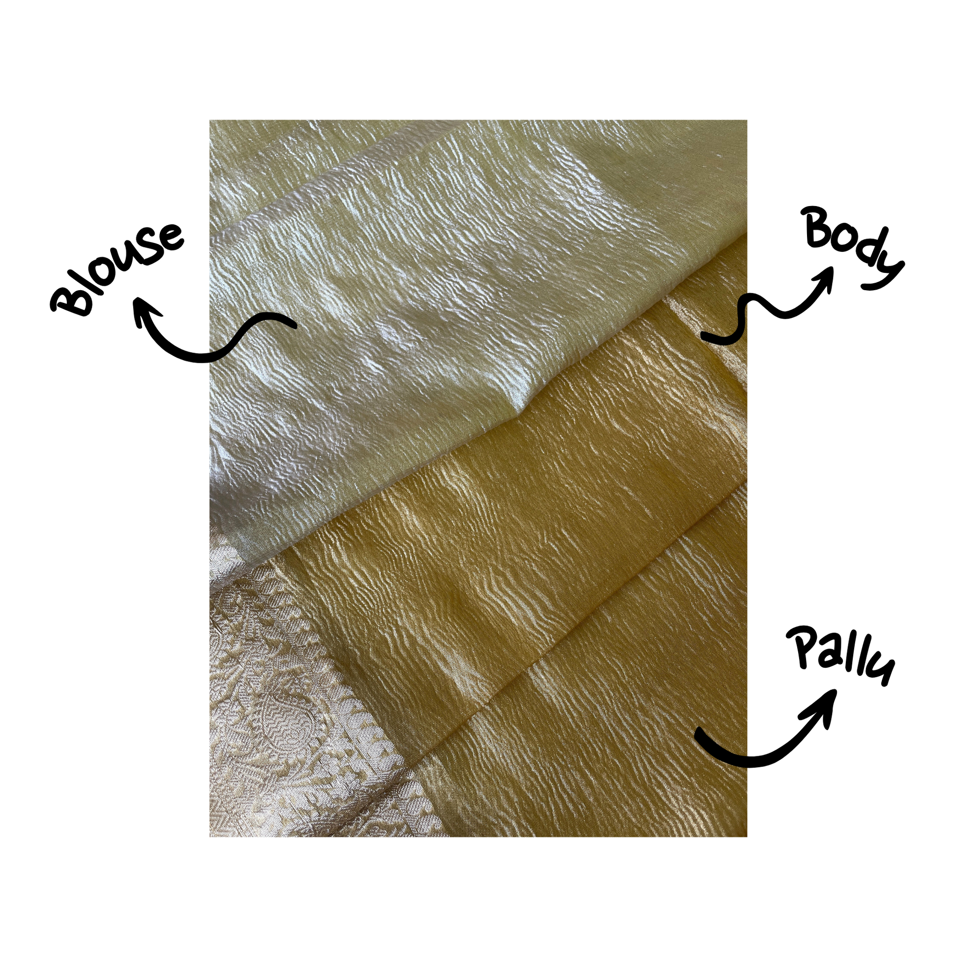 1. Crush tissue sarees are delicate and prone to wrinkles. Dry cleaning ensures proper care and minimizes creasing.